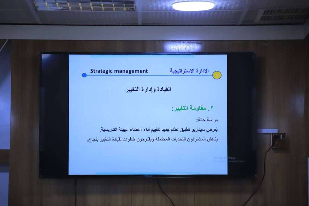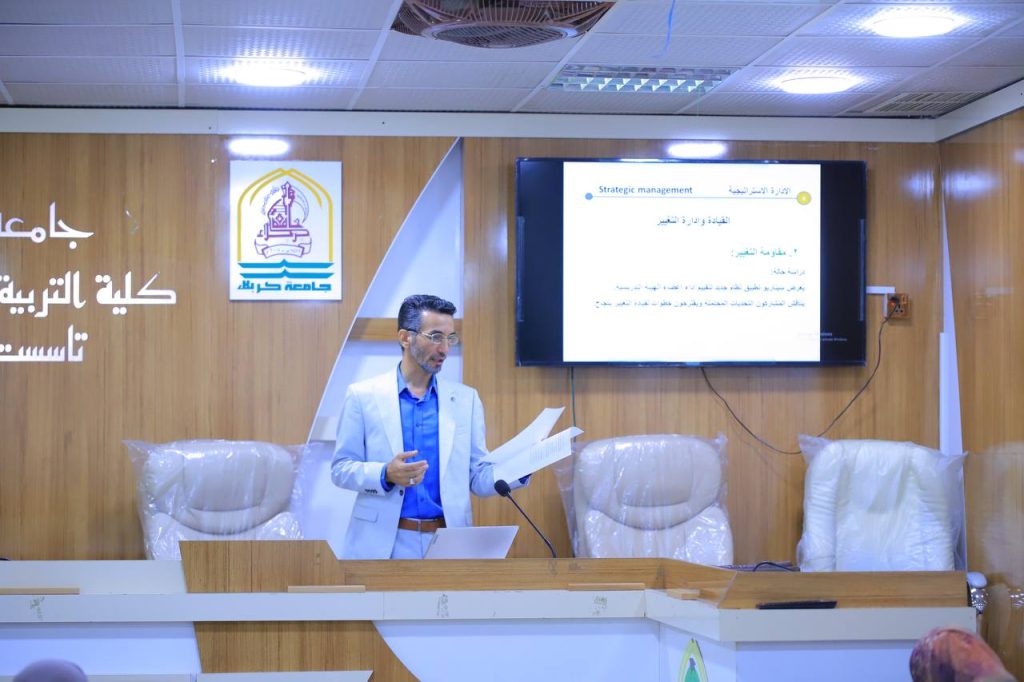نظمت كلية التربية للعلوم الإنسانية في جامعة كربلاء الدورة التدريبية الموسومة “الإدارة الاستراتيجية في المؤسسات التعليمية”، حاضر فيها السيد عقيل الشريفي مدير أكاديمية الوارث للتنمية المستدامة والدراسات الاستراتيجية التابعة للعتبة الحسينية المقدسة، مستهدفة الدورة القيادات الأكاديمية، أعضاء الهيئة التدريسية، والإداريون المعنيون بالتخطيط والتطوير.