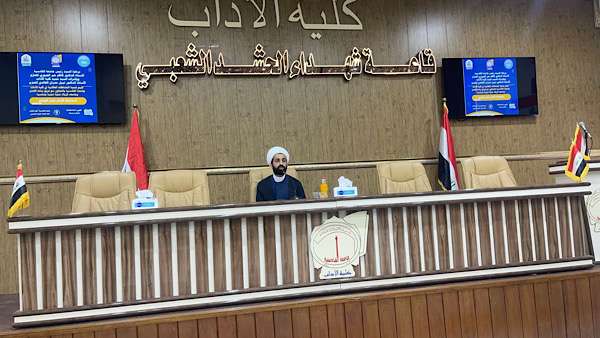 حاضر التدريسي في كلية التربية للعلوم الإنسانية م.م. الشيخ مسلم صادق في ندوة علمية بذكرى شهادة إمام العلم والعلماء جعفر بن محمد الصادق ( عليهما السلام)، التي نظمتها وحدة النشاطات الطلابية في كلية الآداب بجامعة القادسية.