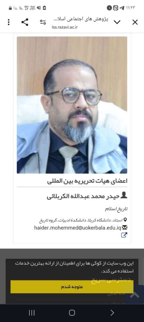 أختير الأستاذ الدكتور حيدر الكربلائي التدريسي في قسم التاريخ بكلية التربية للعلوم الإنسانية/ جامعة كربلاء عضوًا في هيئة تحرير مجلة العلوم الاجتماعية في الجامعة الرضوية.