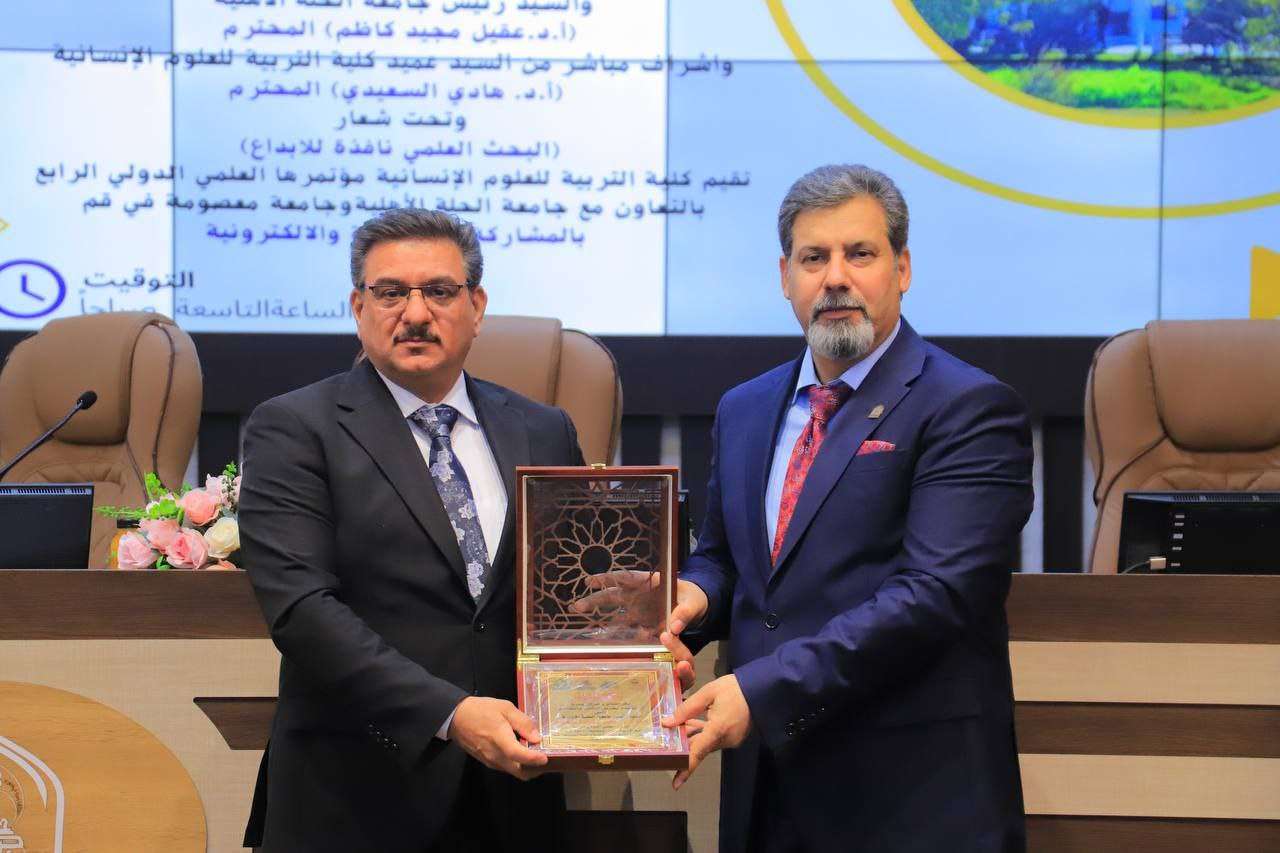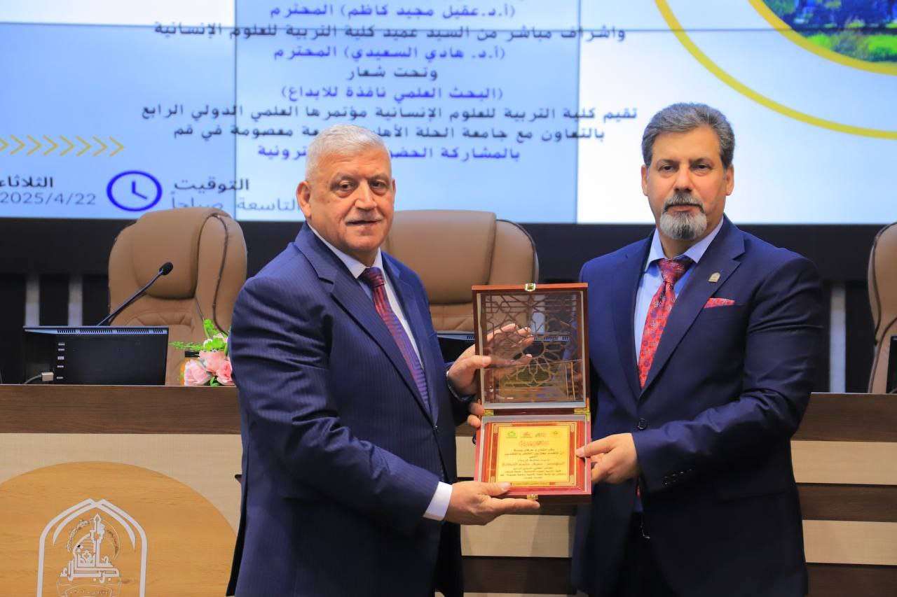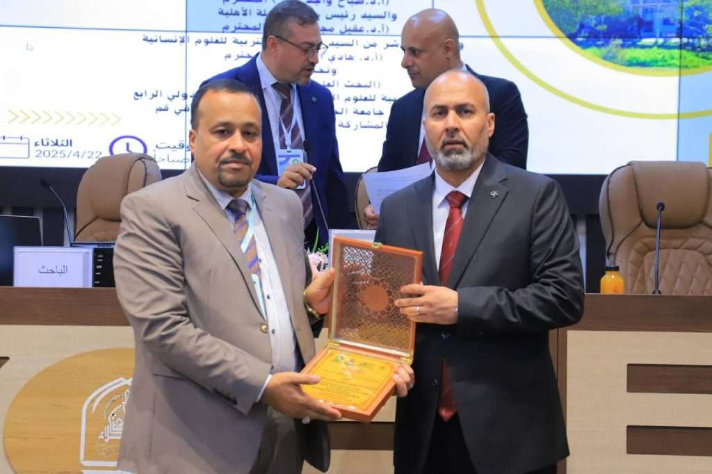 جانب من تكريم الشخصيات الحاضرة في المؤتمر الدولي الرابع لكلية التربية للعلوم الإنسانية، الموسوم “#العلوم_الإنسانية_ورهانات_بناء_مجتمع_المعرفة”