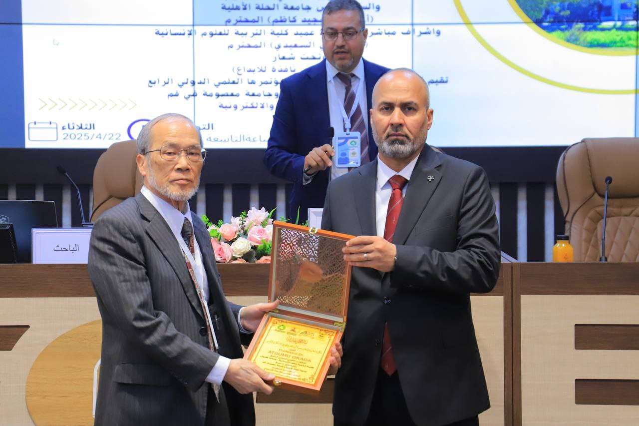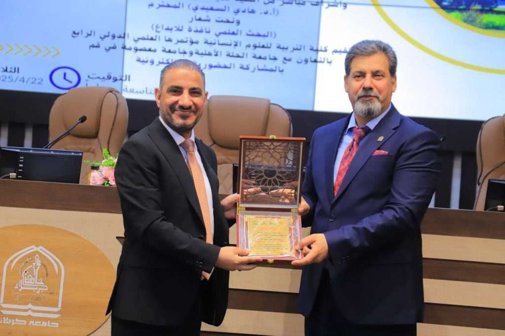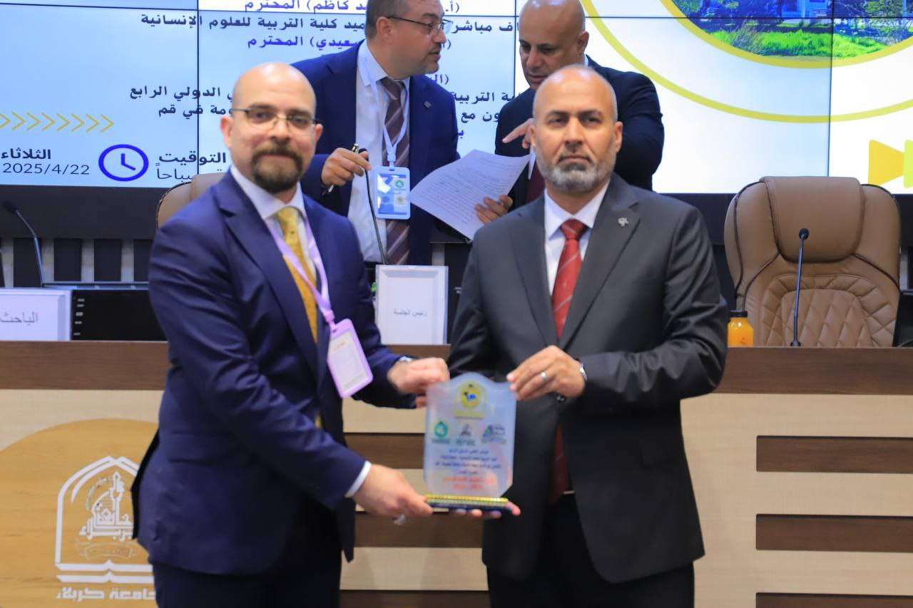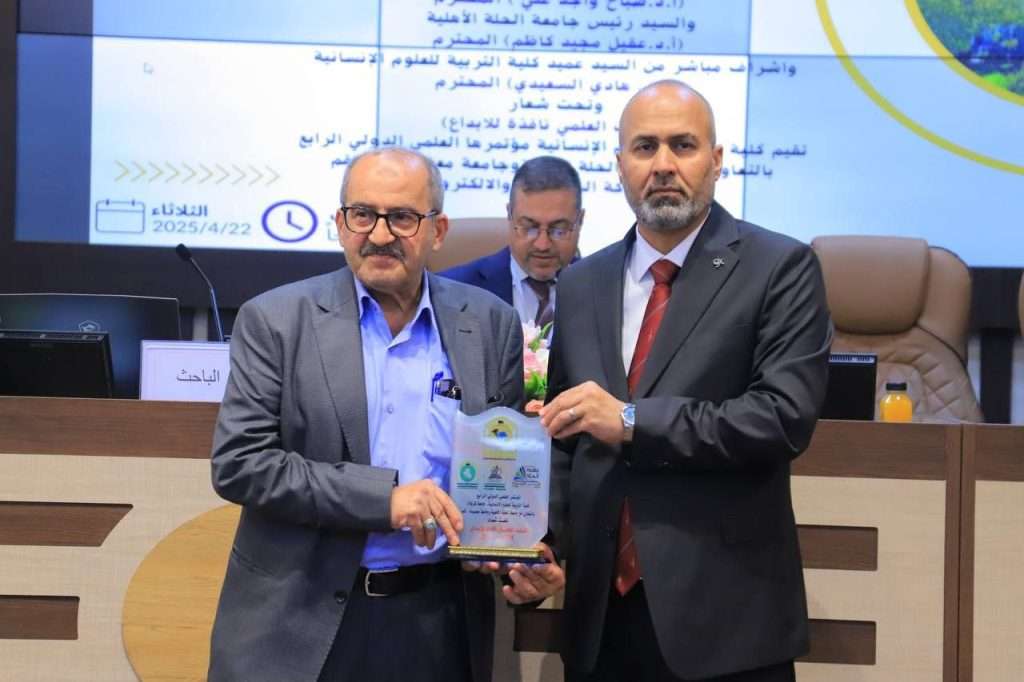 جانب من تكريم الشخصيات الحاضرة في المؤتمر الدولي الرابع لكلية التربية للعلوم الإنسانية، الموسوم “#العلوم_الإنسانية_ورهانات_بناء_مجتمع_المعرفة”