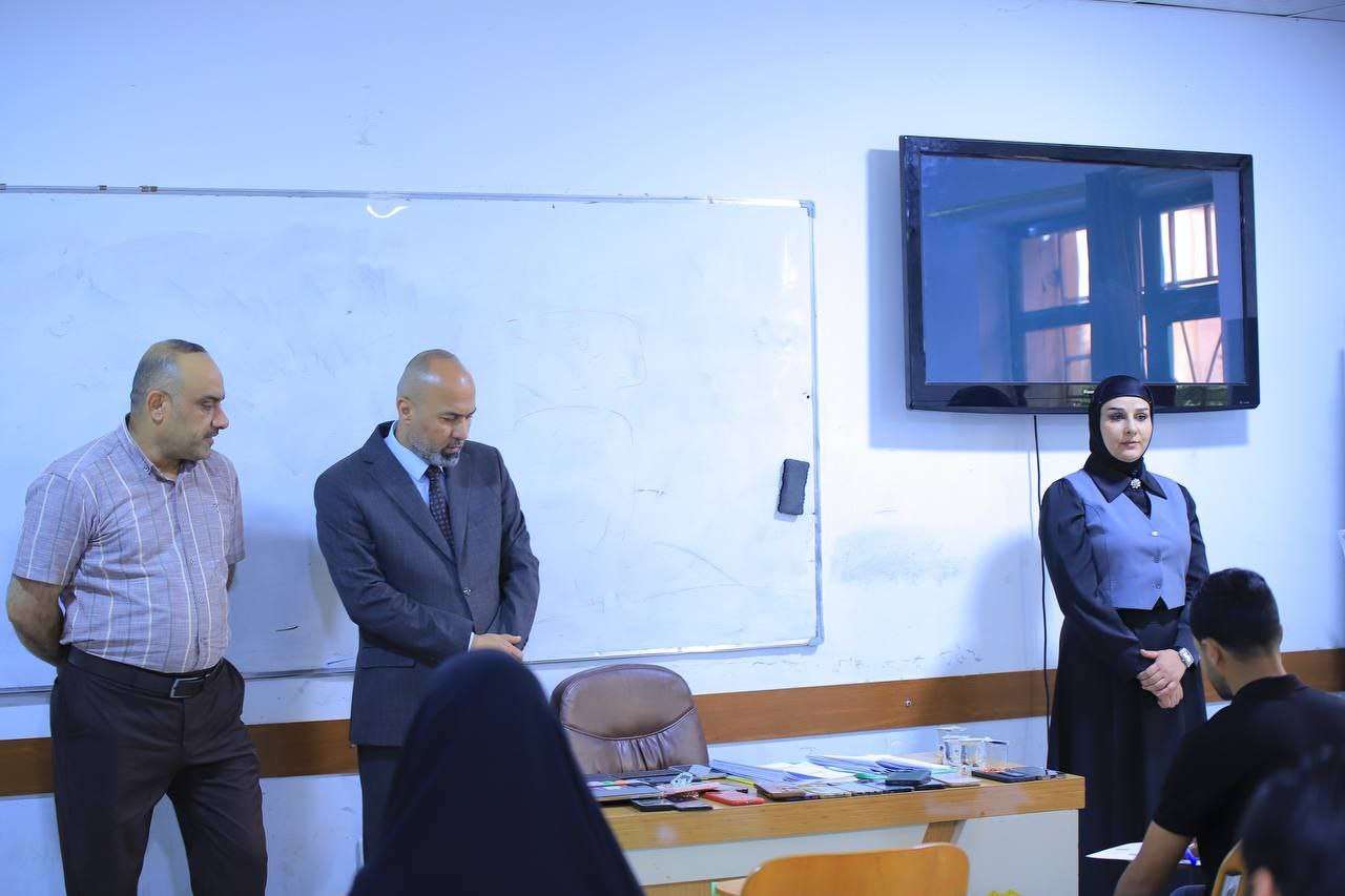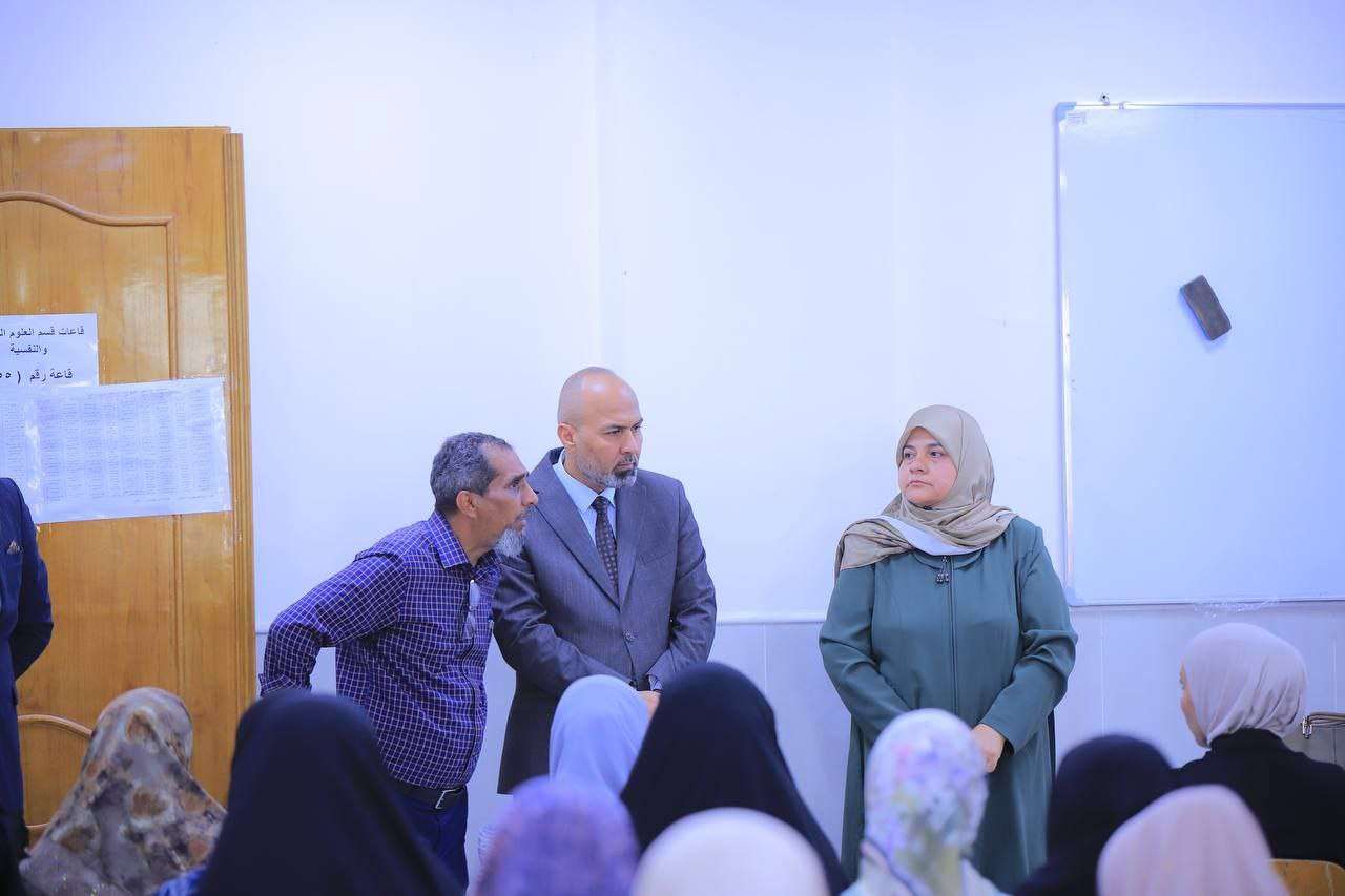 السيد عميد كلية التربية للعلوم الإنسانية الأستاذ الدكتور هادي السعيدي المحترم يتفقد سير الامتحانات النهائية في الأقسام العلمية للإطلاع عن كثب على الإجراءات المعتمدة وتطبيق التعليمات الامتحانية والبيئة المناسبة لأدائها.