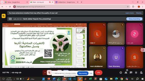 حاضر التدريسيان (م.د. حيدر محمد الكريطي، وم.م. أنفال خضير عباس) في قسم الجغرافية التطبيقية بكلية التربية للعلوم الإنسانية، في الندوة العلمية الإلكترونية الموسومة “التغيرات المناخية: آثارها وسبل معالجتها”، والتي أقامتها وحدة شؤون المرأة في كلية علوم الحاسوب وتكنولوجيا المعلومات، مستهدفة الندوة الملاك التدريسي والإداري في جامعة كربلاء.