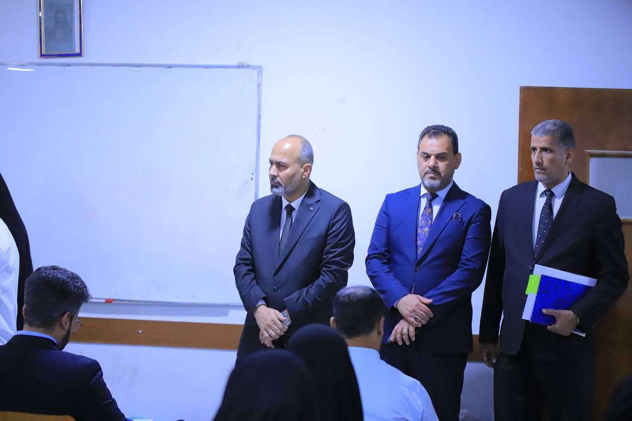 تفقد السيد عميد كلية التربية للعلوم الإنسانية في جامعة كربلاء، الأستاذ الدكتور هادي السعيدي المحترم وبرفقة معاونيه للشؤون العلمية والإدارية، سير الاختبار التنافسي في الكلية، وذلك في إطار حرص العمادة على توفير الأجواء المناسبة للطلبة المتقدمين وضمان انسيابية أداء الاختبار وفق الضوابط والتعليمات الوزارية.
