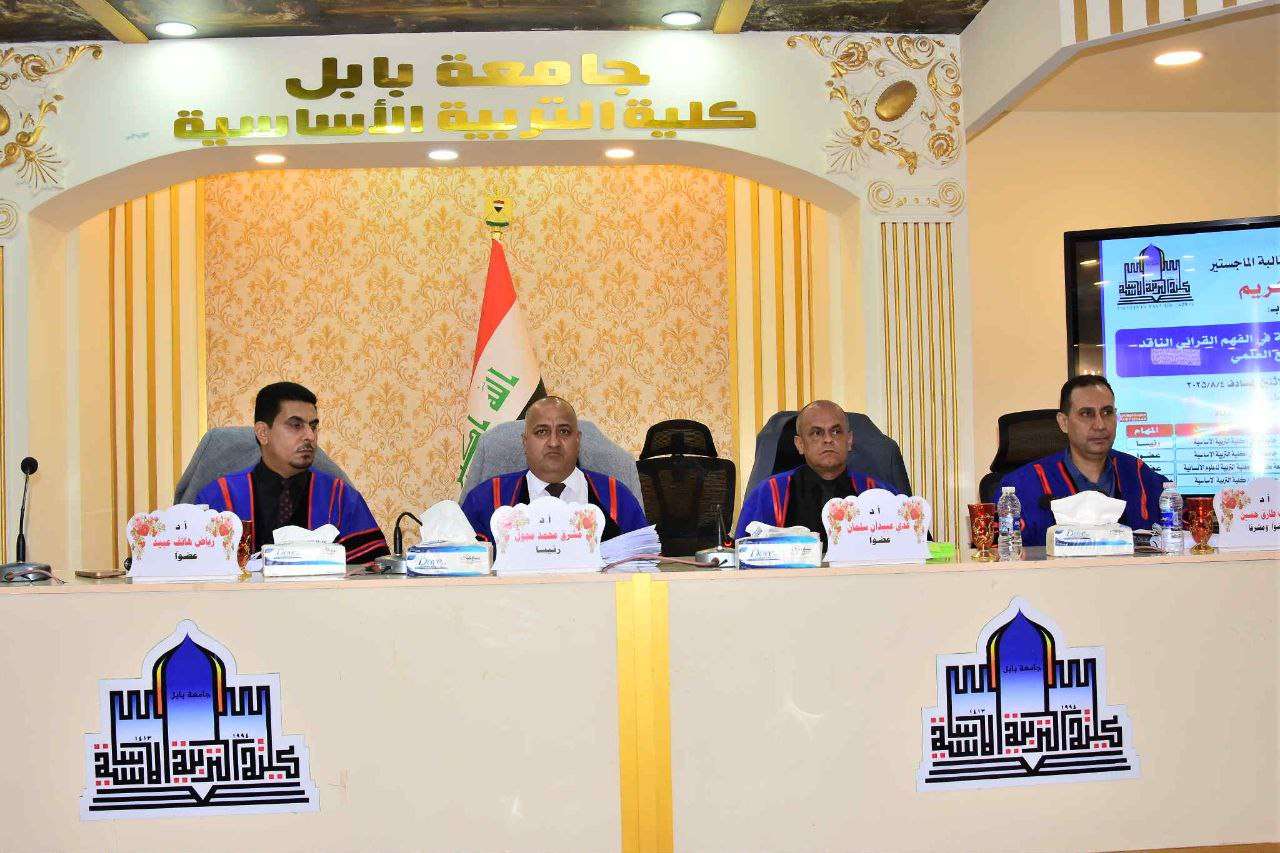 وقد جرت المناقشة بحضور نخبة من الأساتذة المتخصصين، وشُخِّصت الرسالة على ضوء أصالتها العلمية ومنهجها البحثي، وما توصلت إليه من نتائج يمكن الإفادة منها في ميدان المناهج التربوية وطرائق التدريس (طرائق تدريس اللغة العربية).