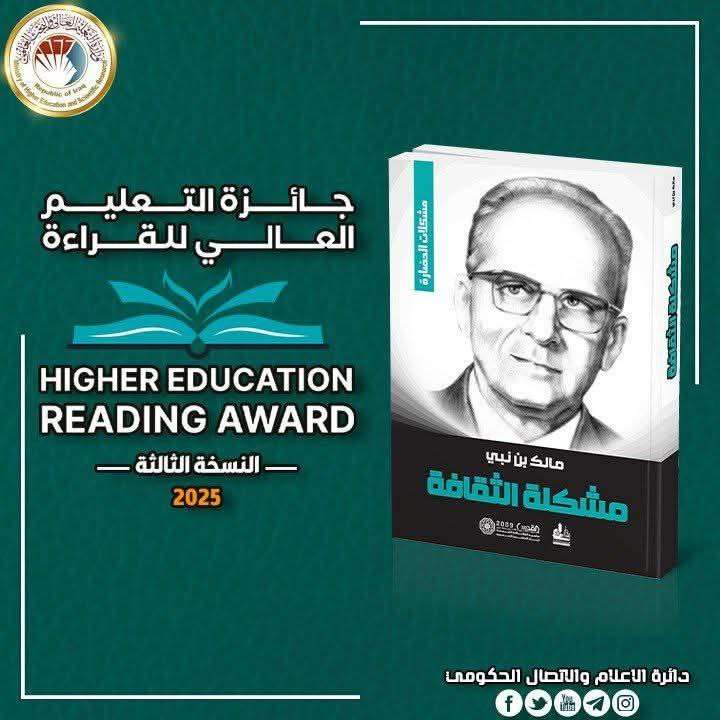 انطلاقًا من رؤية معالي وزير التعليم العالي والبحث العلمي الدكتور نعيم العبودي المحترم، وبإشراف مباشر من السيد رئيس جامعة كربلاء الأستاذ الدكتور صباح واجد علي المحترم في ترسيخ ثقافة الوعي وتنمية التفكير النقدي الإيجابي، تدعو جامعة كربلاء طلبتها الأعزاء إلى المشاركة الفاعلة والمنافسة في مسابقة القراءة (النسخة الثالثة) الخاصة بكتاب “مشكلة الثقافة” للمفكر مالك بن نبي، لإعلاء اسم جامعتنا العزيزة.