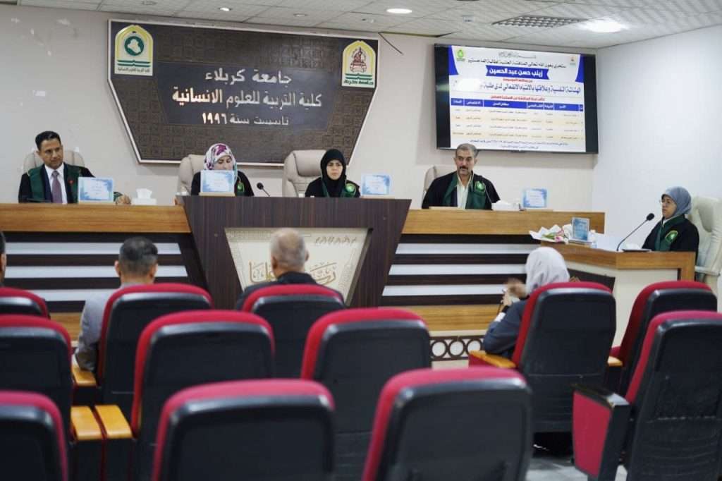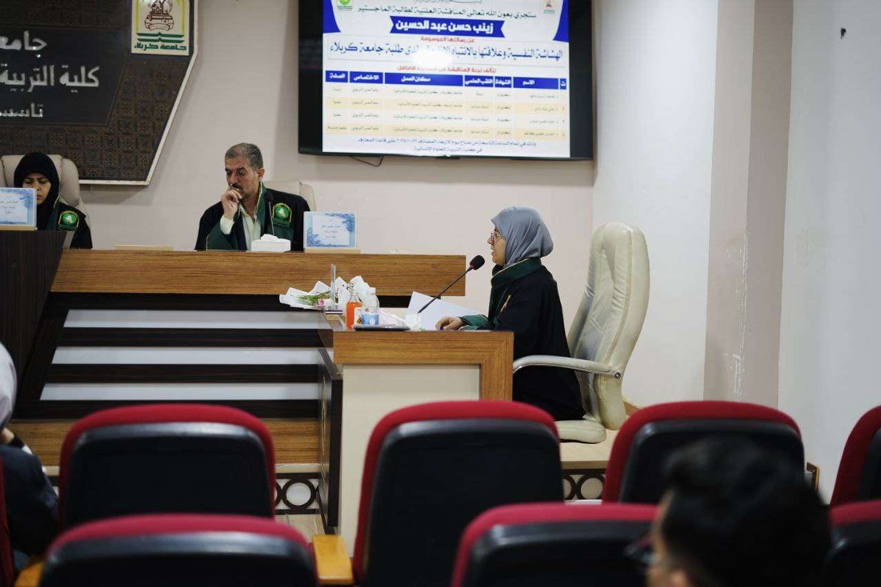 نُوقشت في قسم العلوم التربوية والنفسية بكلية التربية للعلوم الإنسانية – جامعة كربلاء، رسالة الماجستير الموسومة: “الهشاشة النفسية وعلاقتها بالانتباه الانفعالي لدى طلبة الجامعة”، للطالبة زينب حسن عبد الحسين، بإشراف الأستاذ المساعد إحسان خضير كاظم. هدفت الدراسة إلى تسليط الضوء على الهشاشة النفسية وعلاقتها بـ الانتباه الانفعالي لدى طلبة الجامعة، عن طريق الكشف عن طبيعة العلاقة بين المتغيّرين، فضلاً عن بيان أثر متغيّري الجنس والتخصص في هذه العلاقة، وكذلك معرفة مدى إسهام المتغيّر المستقل الهشاشة النفسية في التباين الكلي للمتغيّر التابع الانتباه الانفعالي. تألفت الرسالة من أربعة فصول: تضمّن الفصل الأول: مشكلة البحث، وأهميته، وأهدافه، وحدوده، فضلاً عن تعريف المصطلحات، واشتمل الفصل الثاني على الإطار النظري والدراسات السابقة ذات الصلة بمتغيّري الهشاشة النفسية والانتباه الانفعالي، أما الفصل الثالث فقد تناول منهجية البحث وإجراءاته، مع عرض أدوات البحث، وبيان صدقها وثباتها، والأساليب الإحصائية المعتمدة، وعرَض الفصل الرابع نتائج البحث ومناقشتها والاستنتاجات التي تم التوصل إليها. أظهرت نتائج الدراسة أن عينة البحث تمتلك مستوى منخفضًا من الهشاشة النفسية، في مقابل مستوى عالٍ من الانتباه الانفعالي. كما لم تظهر فروق ذات دلالة إحصائية في الهشاشة النفسية والانتباه الانفعالي تُعزى إلى متغيّري الجنس والتخصص. تألّفت لجنة المناقشة من السادة: أ.د. فاطمة ذياب مالود – رئيسًا أ.م.د. علي عناد زامل – عضوًا أ.م.د. علياء نصير عبيس – عضوًا أ.م. إحسان خضير كاظم – عضوًا ومشرفًا