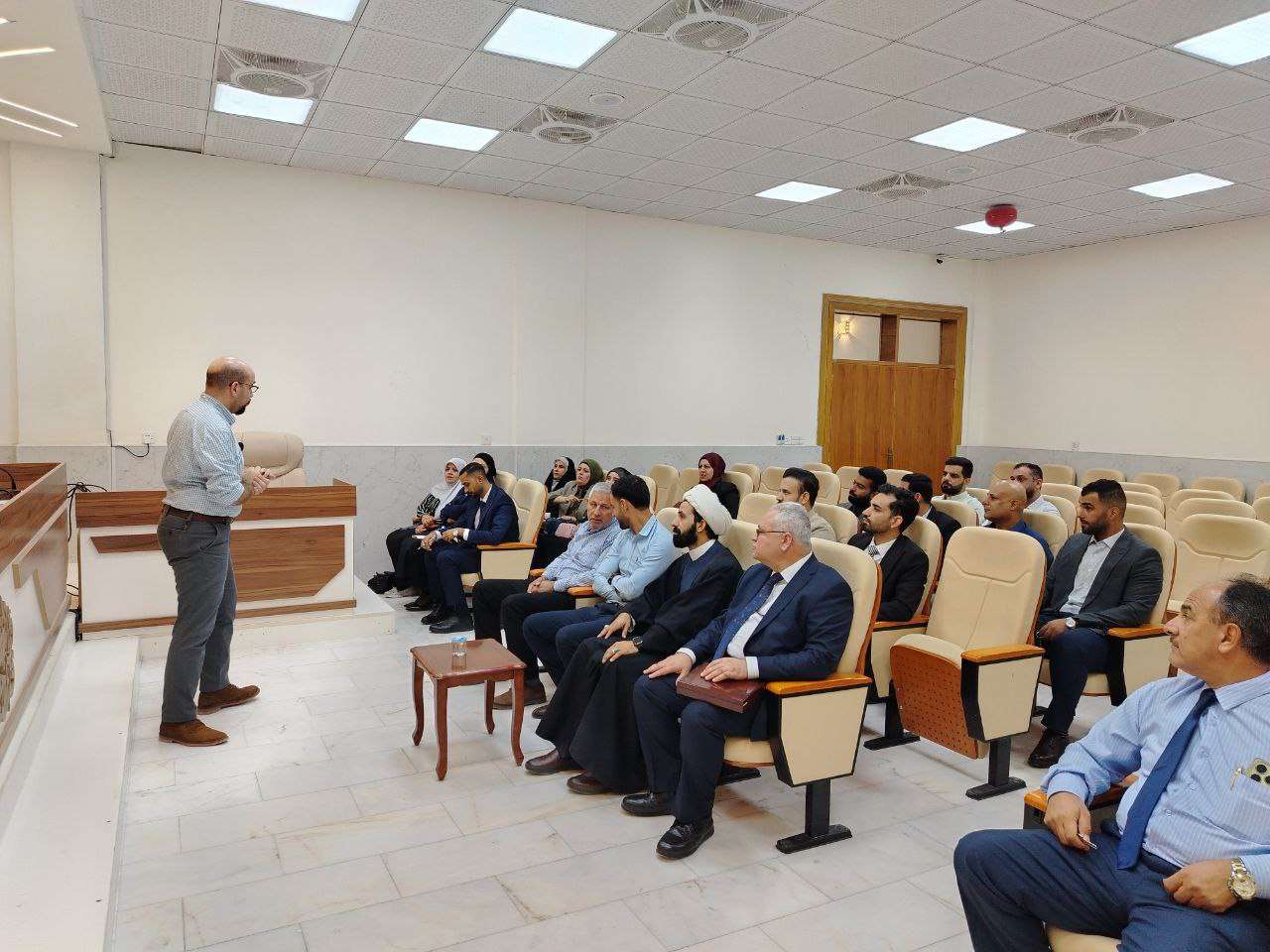 عقد رئيس قسم اللغة الإنجليزية في كلية التربية للعلوم الإنسانية، أ.م.د. ريث زهير عبد الأمير، اجتماعاً موسعاً مع أعضاء الهيئة التدريسية، ناقش خلاله مجموعة من المحاور المهمة لتعزيز العملية التعليمية والأكاديمية بالقسم. وشملت محاور الاجتماع: – متابعة الغيابات: التأكيد على أهمية متابعة غياب الطلبة بشكل دقيق لضمان انتظامهم الدراسي. – الالتزام بتعليمات العمادة: التشديد على الالتزام بتوجيهات العمادة في جميع الجوانب الأكاديمية والإدارية. – نشر البحوث العلمية: التركيز على نشر البحوث في المجلات العالمية المصنفة ضمن قاعدة سكوبس بهدف رفع المستوى البحثي للقسم. – الالتزام الوظيفي: التذكير بأهمية الالتزام بمواعيد الدوام الرسمي والمحافظة على أوقات المحاضرات. – احتواء الطلبة: بحث سبل تعزيز التواصل الإيجابي مع الطلبة وتهيئة بيئة محفزة وداعمة للتعلم. – متابعة بحوث التخرج: متابعة سير بحوث التخرج والتأكد من إنجازها وفق الجدول الزمني والمعايير الأكاديمية المطلوبة. كما شهد الاجتماع تكريم أ.م.د. مثنى مكي بمناسبة عودته إلى أسرة القسم، تقديراً لكفاءته العلمية. وهنأ القسم كل من: الأستاذة وسن نوري بمناسبة حصولها على الترقية العلمية، متمنين لها مزيداً من النجاح والتألق، والمدرس مساعد إيلاف علي حسين لاختيارها ممثلة للمحافظات الوسطى في الملتقى الثاني للإبداع والطموح، معبراً عن فخر القسم بتميز ملاكاته. وجاء هذا الاجتماع في إطار متابعة شؤون القسم العلمية والإدارية، والارتقاء بمستوى أدائه في جميع المجالات الأكاديمية.