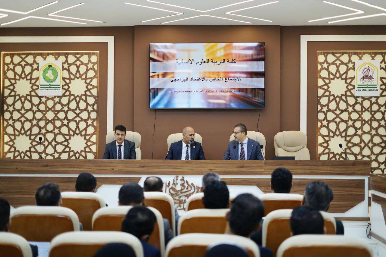عقد السيد عميد كلية التربية للعلوم الإنسانية في جامعة كربلاء الأستاذ الدكتور هادي السعيدي اجتماعاً موسعاً مع أعضاء لجان الاعتماد البرامجي في الأقسام العلمية، بحضور الأستاذ الدكتور مؤيد عمران جياد معاون العميد للشؤون العلمية، والأستاذ الدكتور حيدر كاظم البيرماني عضو مجلس الاعتماد البرامجي لكليات التربية للعلوم الإنسانية، للاستفادة من خبرته في هذا المجال.