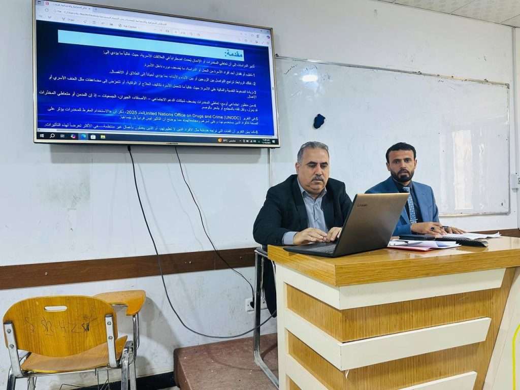 تزامنًا مع الأسبوع العراقي لمكافحة المخدرات، نظّم قسم الجغرافية التطبيقية في كلية التربية للعلوم الإنسانية بجامعة كربلاء، وبالتعاون مع وحدة حقوق الإنسان في الكلية، ندوة علمية بعنوان: “الآثار الجغرافية والاجتماعية للمخدرات في التنمية المستدامة”.