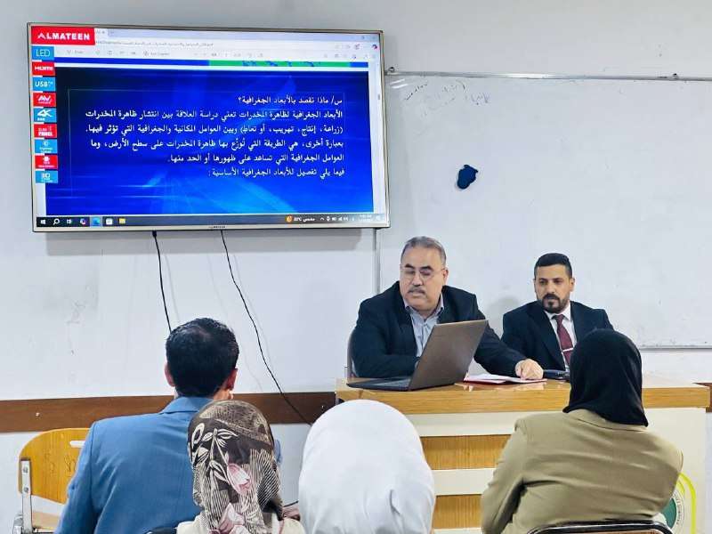 وقدمت الندوة ثلاثة محاور رئيسية: قدم المحور الأول د. حيدر محمد زغير الكريطي وبين فيه الأبعاد الجغرافية لانتشار المخدرات ومسارات التهريب ودور الخرائط المكانية في فهم الظاهرة.