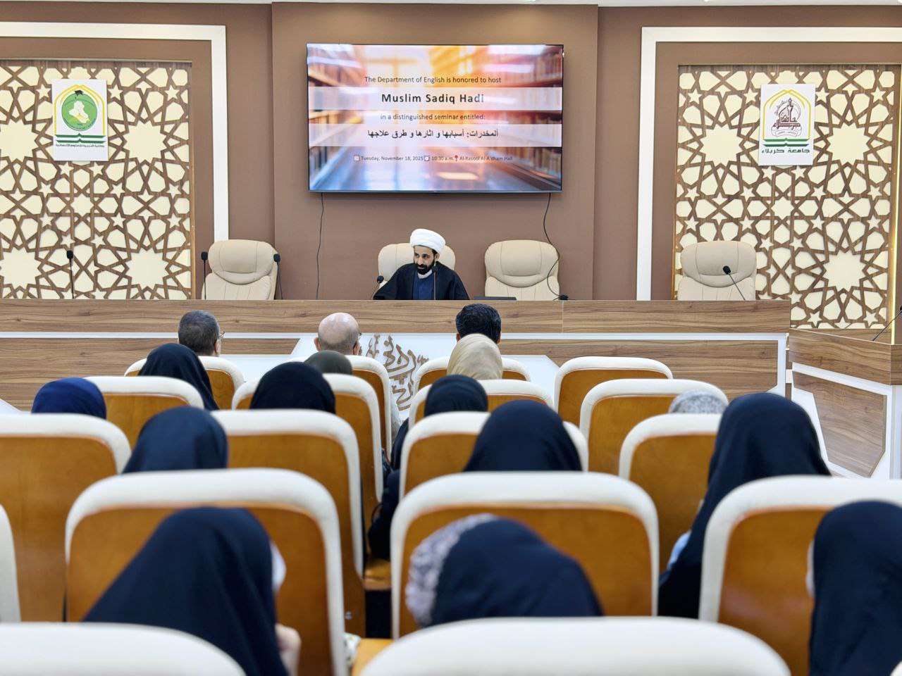 نظّم قسم اللغة الإنجليزية في كلية التربية للعلوم الإنسانية بجامعة كربلاء ندوة علمية بعنوان “المخدرات: أسبابها وآثارها وطرق الوقاية منها”، حاضر فيها م.د. مسلم صادق هادي، واستهدفت طلبة الكلية.