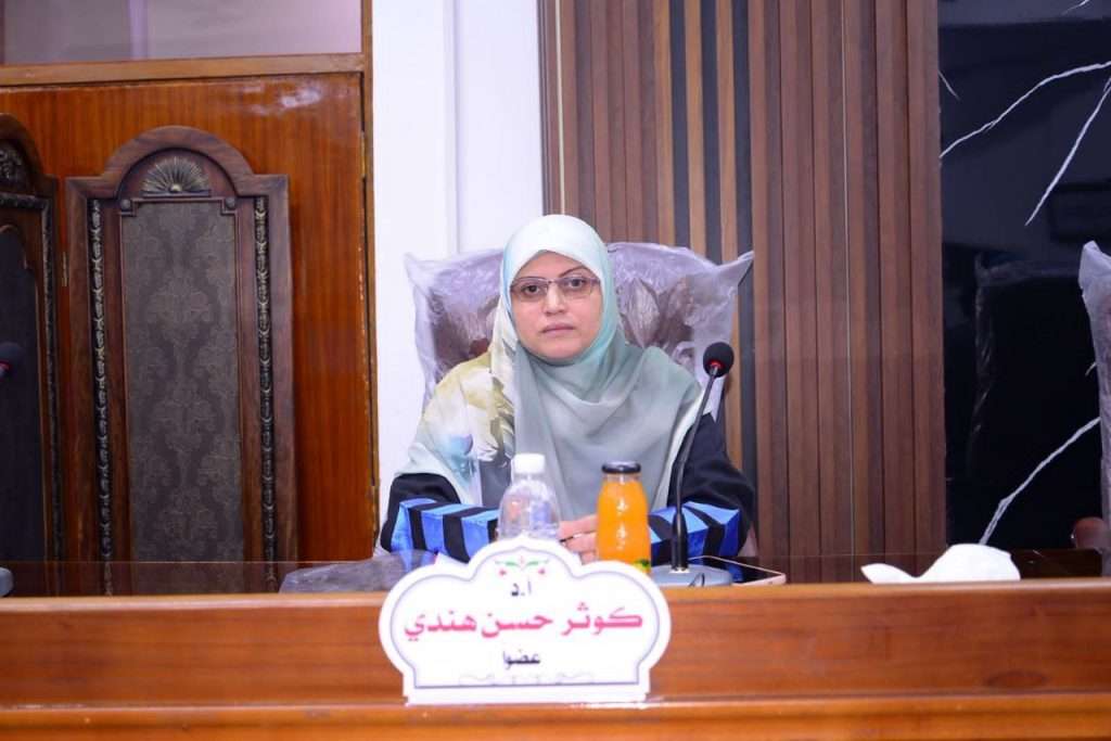اختيرت التدريسية الأستاذ الدكتورة كوثر حسن هندي من قسم التاريخ في كلية التربية للعلوم الإنسانية/ جامعة كربلاء، عضوًا في لجنة مناقشة رسالة الماجستير الموسومة: “الأحوال العامة للخلافة العباسية حتى سنة (٥٦٠هـ/ ١١٦٤م) في كتاب الأنبياء في تاريخ الخلفاء (ت: ٥٨٠هـ/ ١١٨٥م)”، في كلية التربية للعلوم الإنسانية بجامعة بابل.