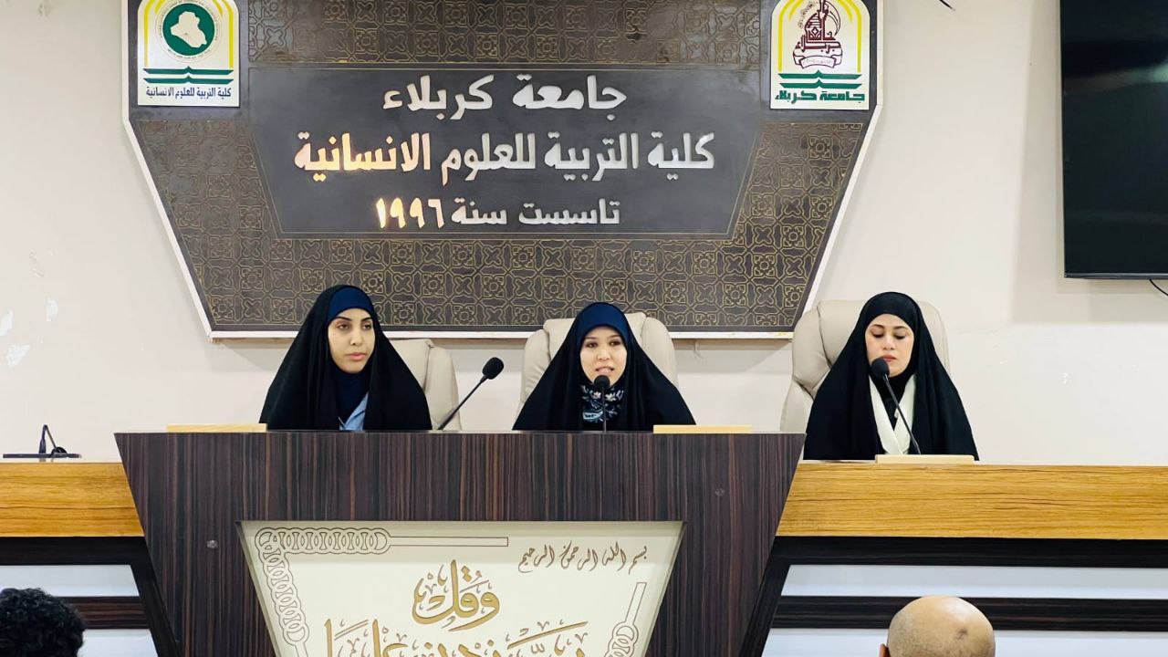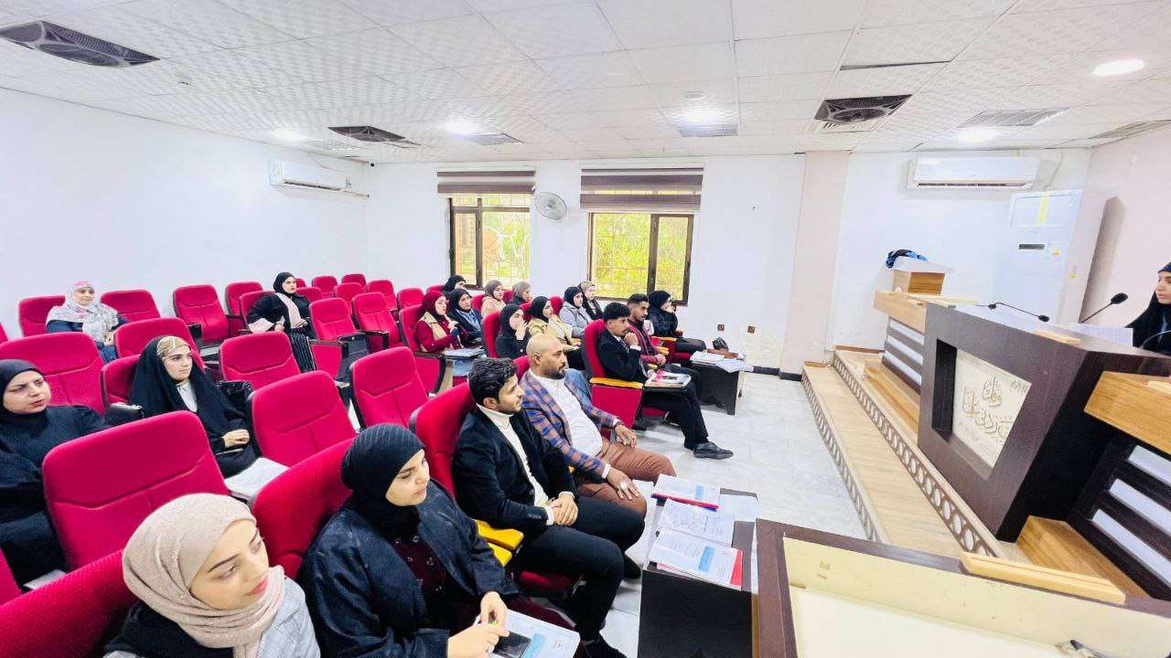 وقدّمت الندوة طالبات المرحلة الثالثة: زاهدة حيدر علي، وهدى ذياب محمد، ورواء حاكم كريم.