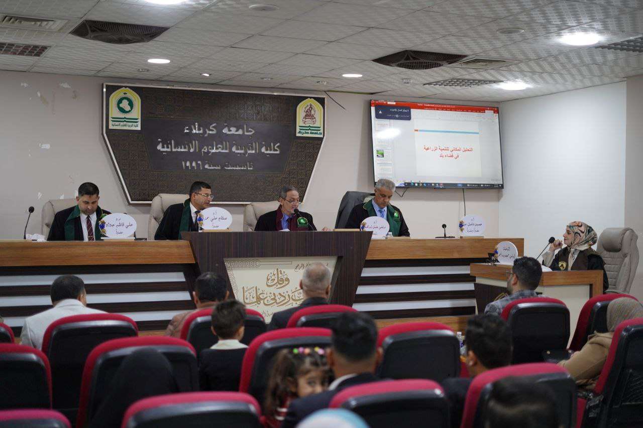 نوقشت في قسم الجغرافية التطبيقية بكلية التربية للعلوم الإنسانية في جامعة كربلاء رسالة الماجستير الموسومة “التحليل المكاني للتنمية الزراعية في قضاء بلد” للطالبة إيناس محجوب أحمد، بإشراف الأستاذ الدكتور حسين فاضل عبد.