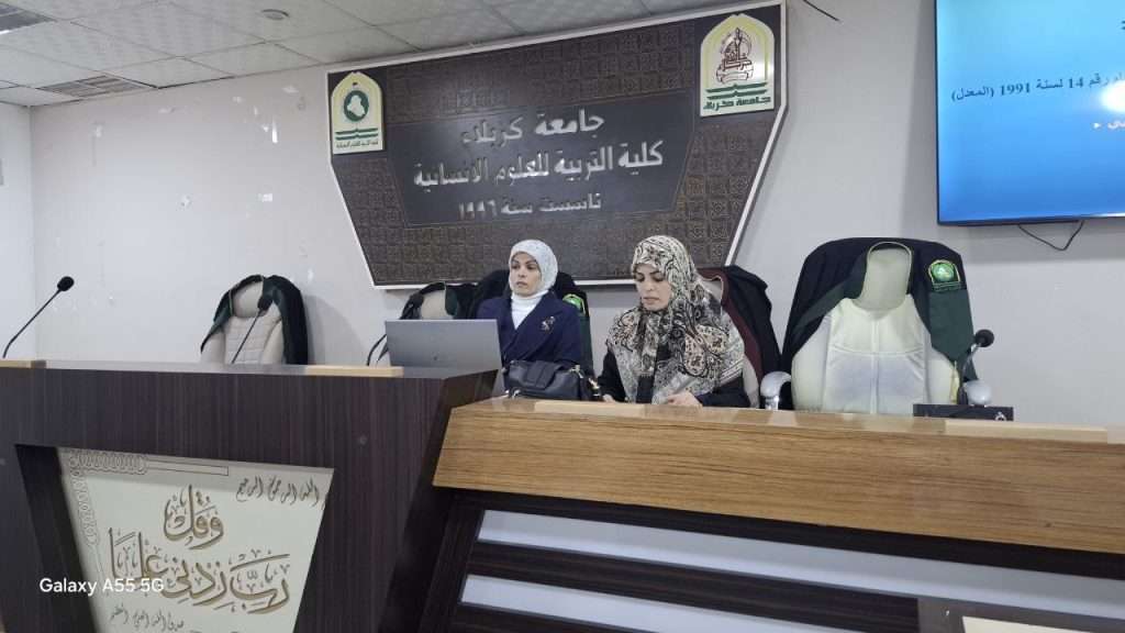 نظّم قسم التاريخ في كلية التربية للعلوم الإنسانية بجامعة كربلاء ندوة قانونية بعنوان (الوعي القانوني بقانون انضباط موظفي الدولة والقطاع العام رقم 41 لسنة 1991 المعدل)، قدّمها كلٌّ من الأستاذ المساعد الدكتور بيداء محمد، والأستاذ المساعد صفاء محمد عبد، والمدرس الدكتور آلاء محمد عبد، وبمشاركة عدد من التدريسيين والمنتسبين.