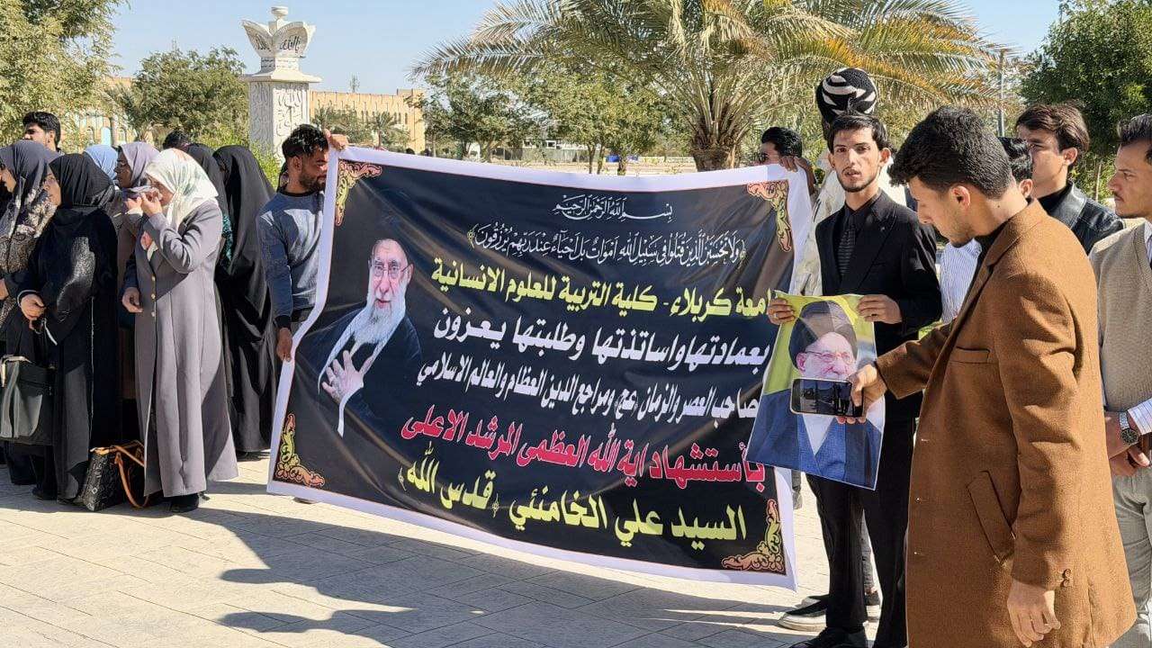 نظمت كلية التربية للعلوم الإنسانية في جامعة كربلاء وقفة حداد وتأبين، برئاسة عميد الكلية وبمشاركة أساتذتها وطلبتها، استنكارًا وتقديرًا لمناسبة استشهاد آية الله العظمى والمرشد الأعلى السيد علي الخامنئي (قدس سره).